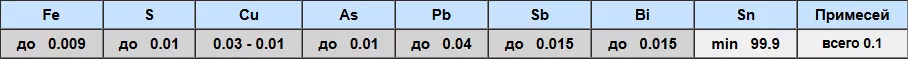 Обозначение марки состоит из следующих элементов: О – обозначает основной металл (олово), а цифра 1 указывает на содержание примесей, которое составляет менее 0,01%.